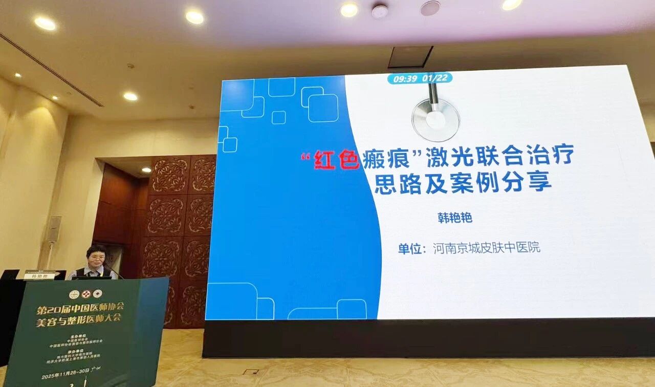 河南京城皮肤中医院韩艳艳主任作为河南地区瘢痕诊疗领域代表,凭借多年深耕皮肤激光与瘢痕修复的临床经验,受邀登上大会讲台,以《“红色瘢痕”激光联合治疗思路及案例分享》为主题,向全国同行输出临床经验与创新疗法,成为会场焦点之一!